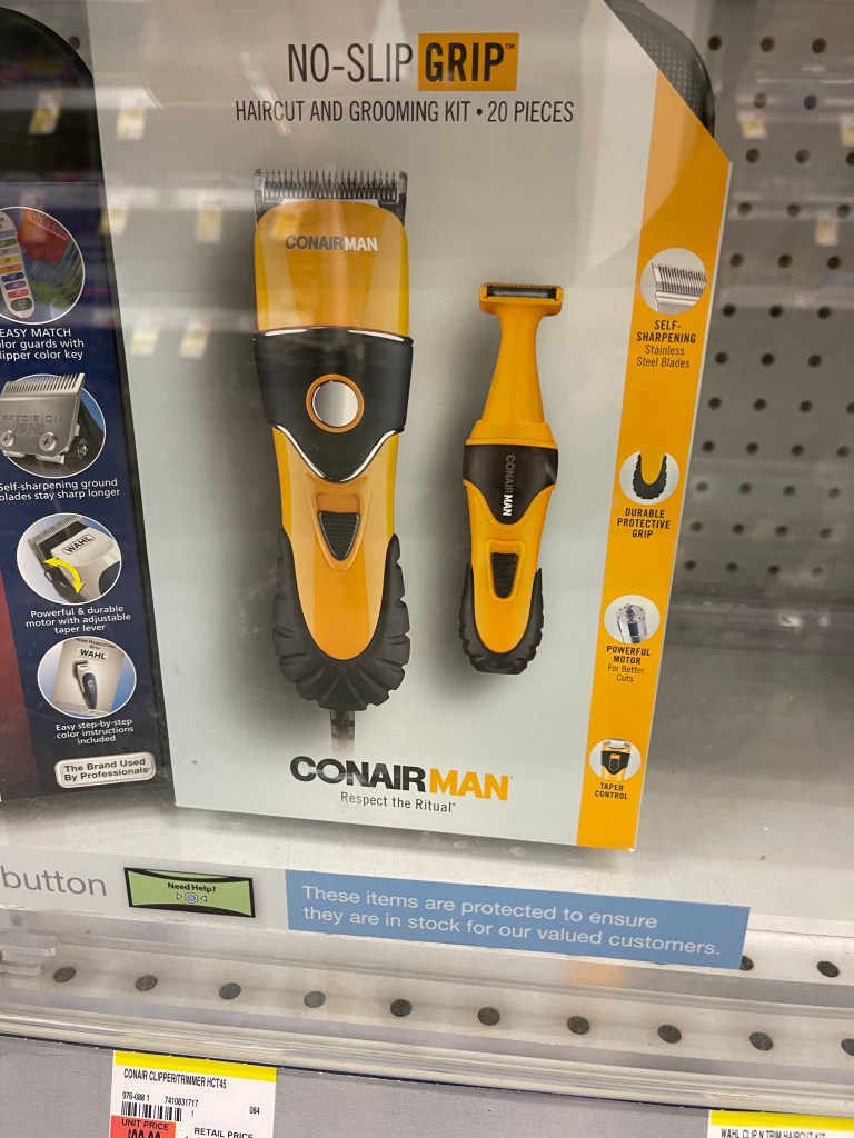 The semiotics of this marketing decision are clear: this is no sissy’s groomer. This is a TOOL for GETTING IT DONE. In the broader context of basic grooming equipment, no other company that I could find was applying this type of visual design. Even Conair’s own higher end offerings, marketed towards professionals, had a much more staid design, like this one: https://www.conair.com/c/24b35/chrome-3in1-kit/788.